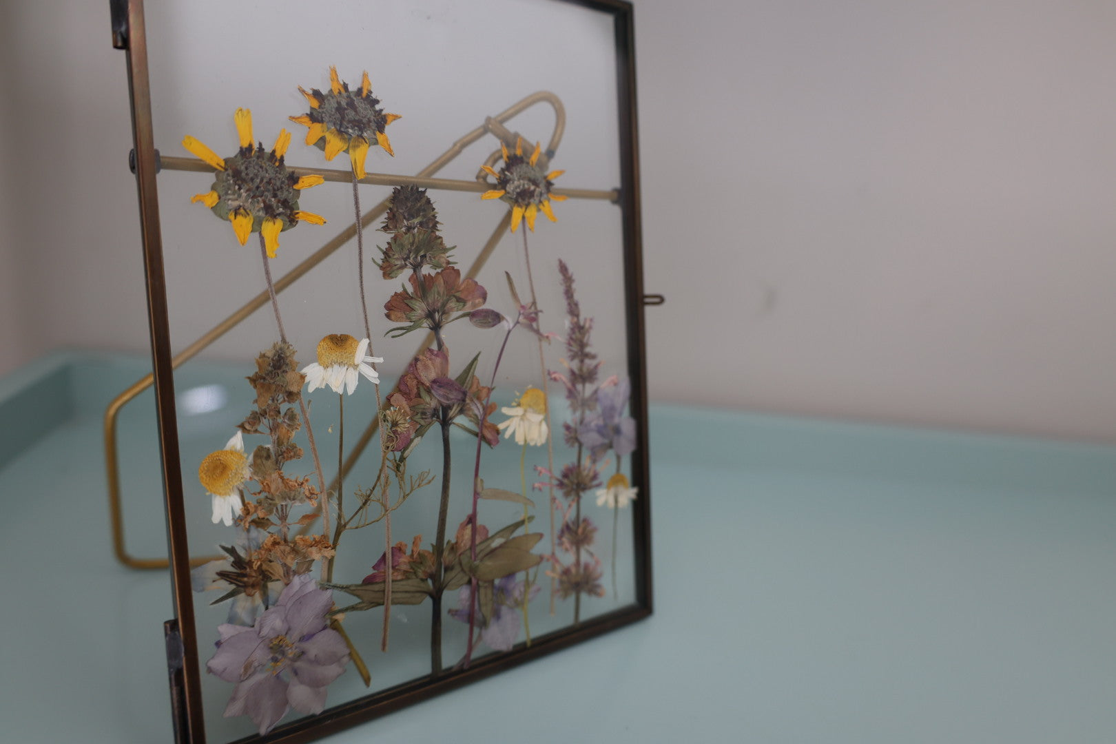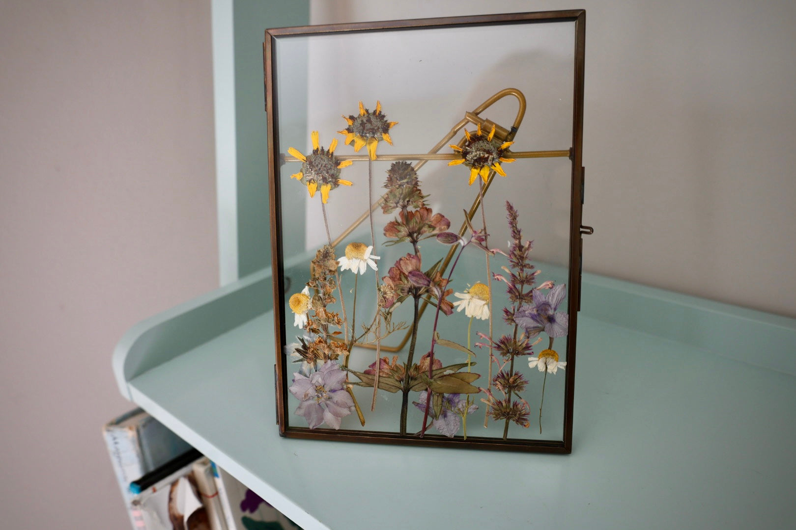 Pressed Flowers in Antique Brass Frame, 5 in. x 7 in.