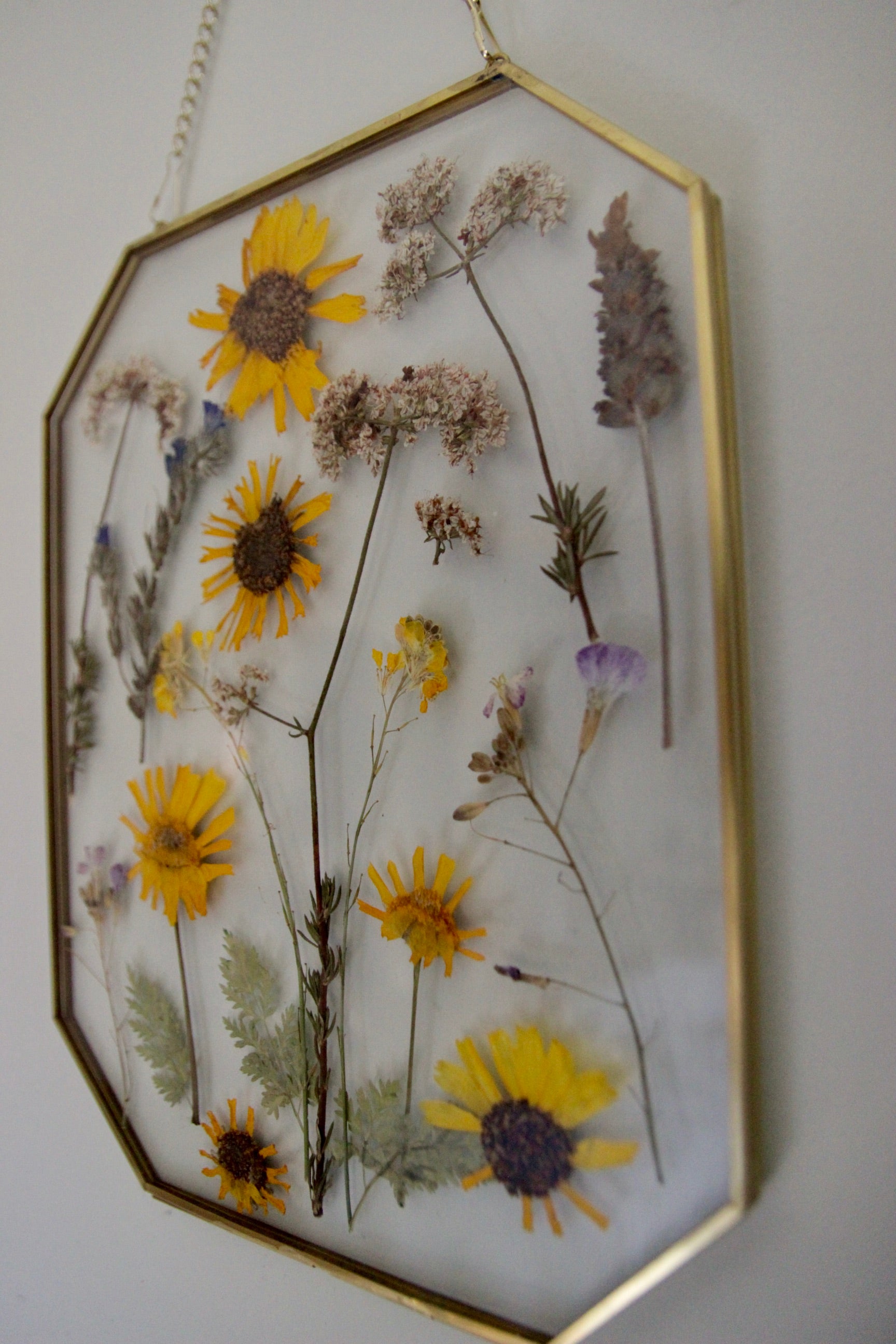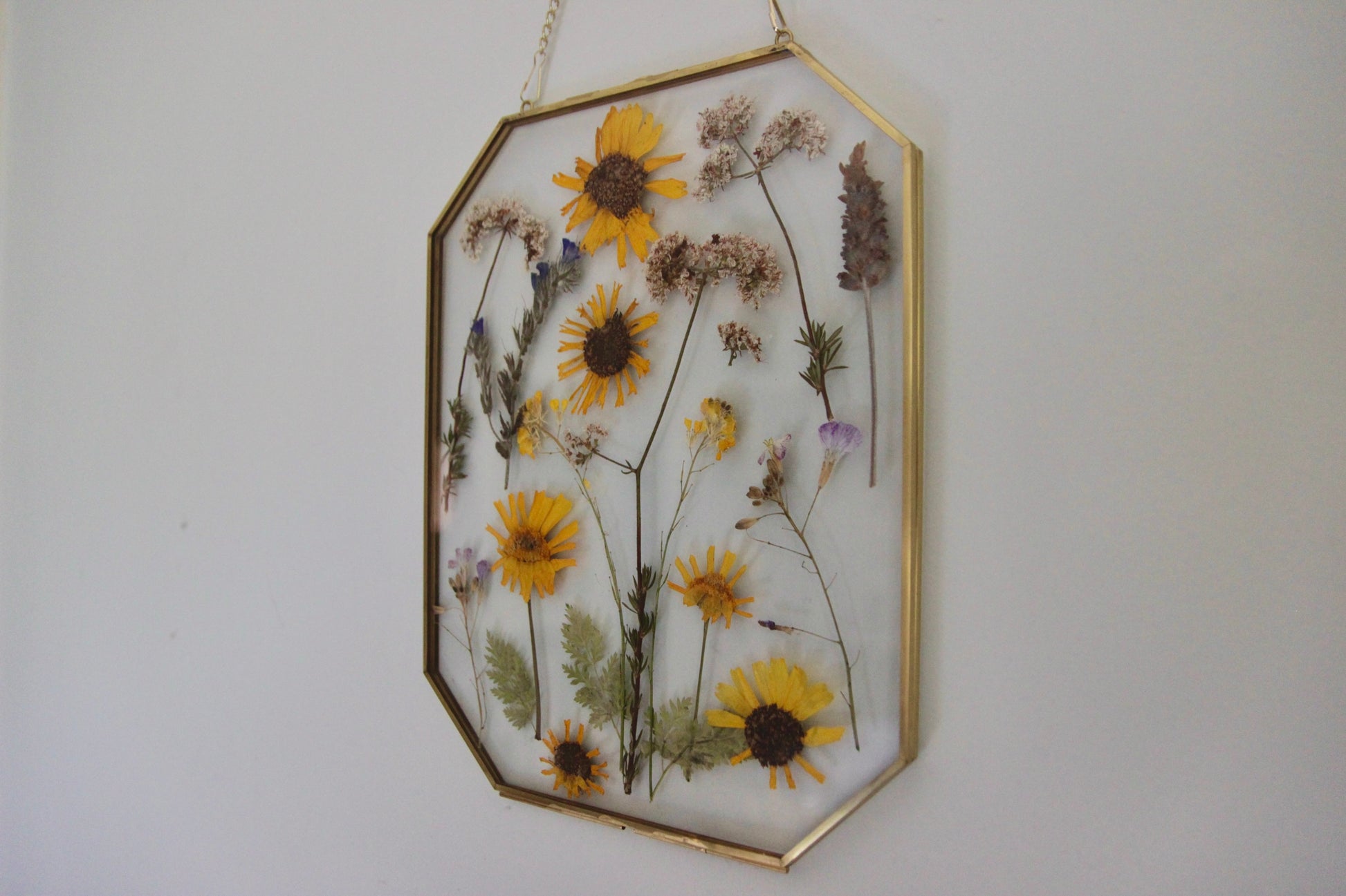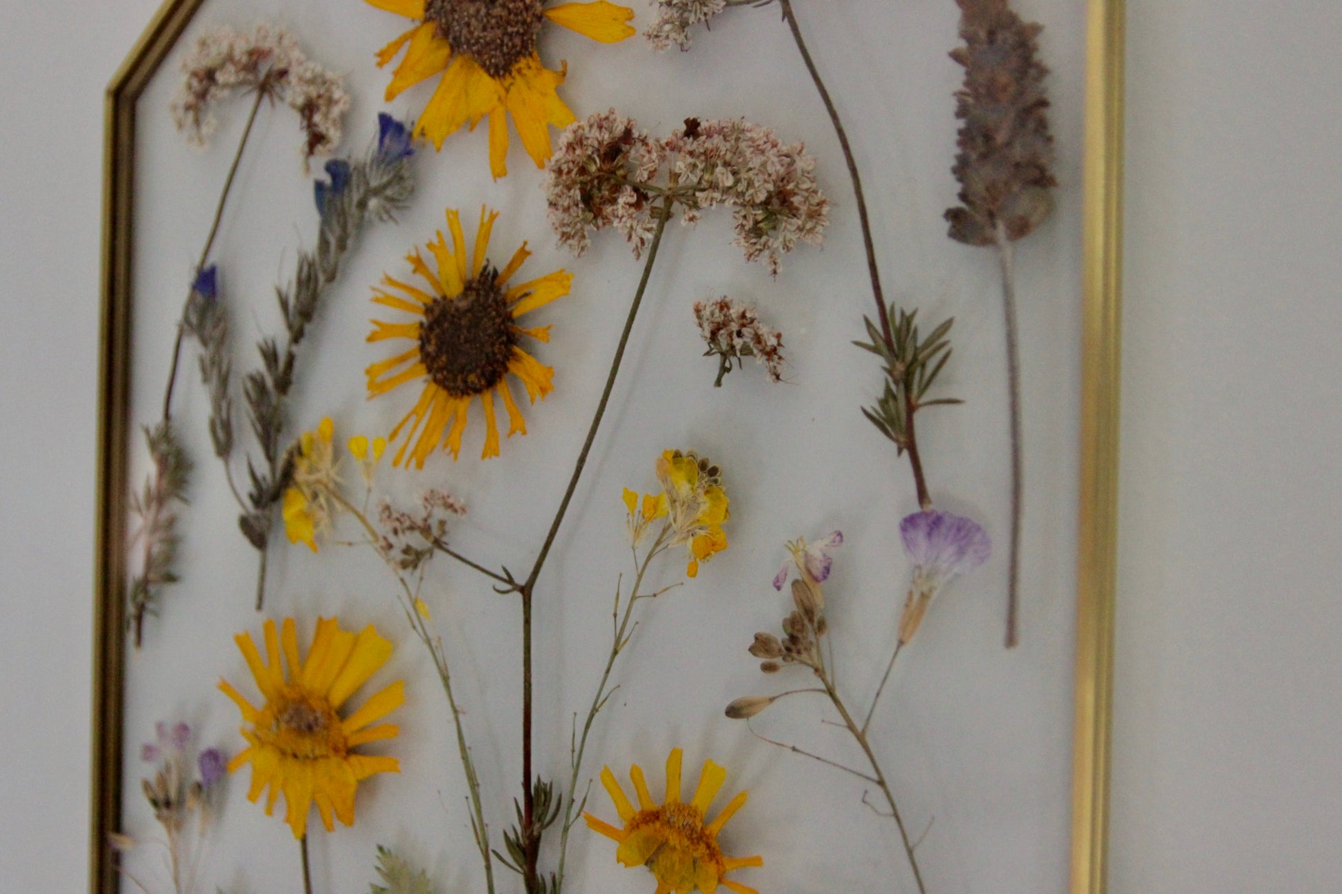 Pressed Flowers in Large Gold Hexagon Frame, 8"x10"